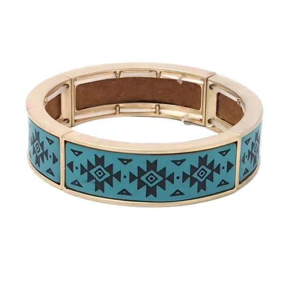 Aztec Pattern Metal Stretch Bracelet: Turquoise