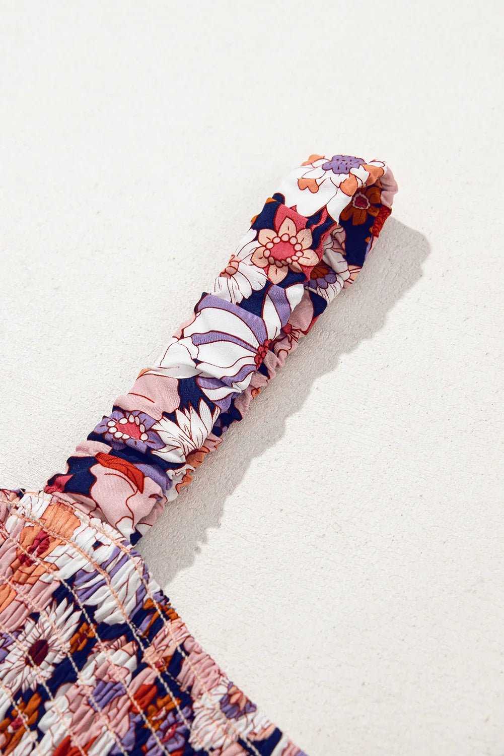 Black Floral Square Neckline Stretch High Waist Jumpsuit