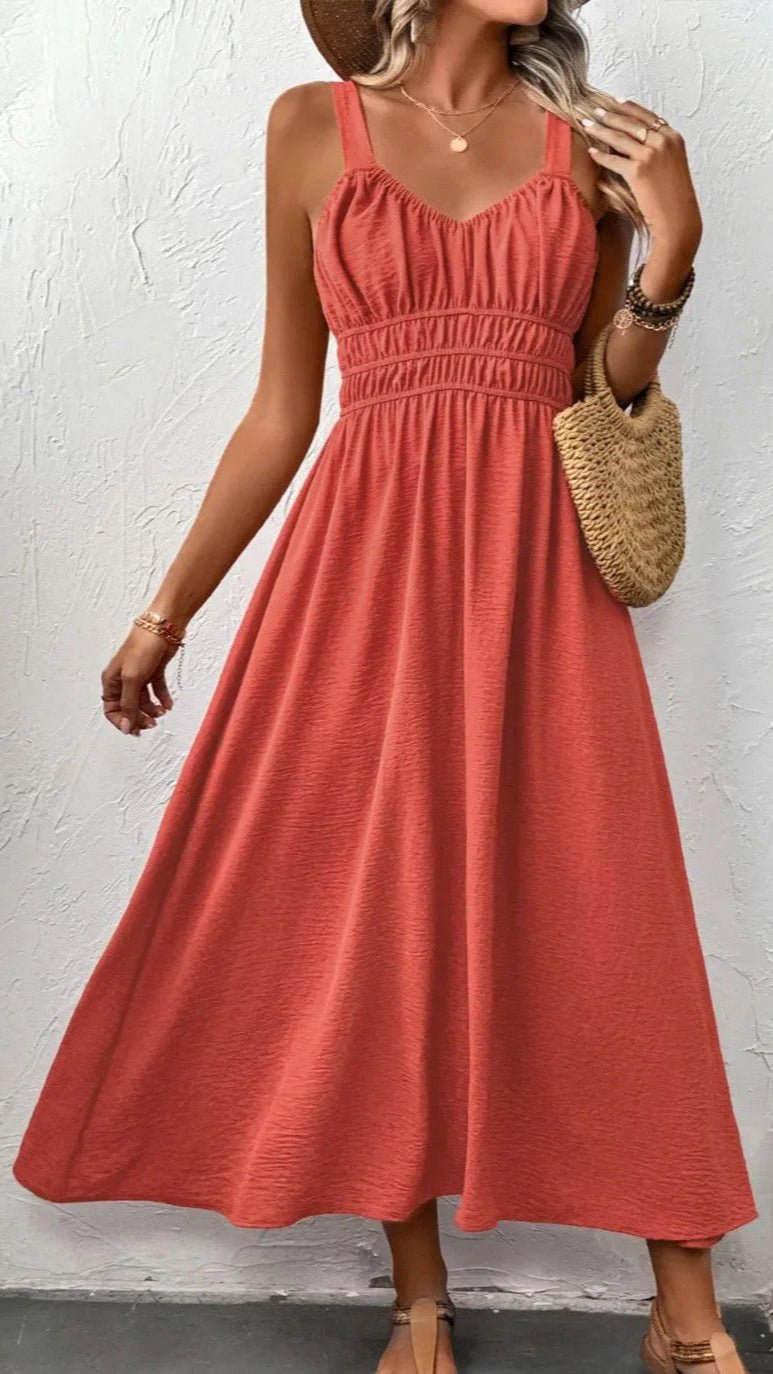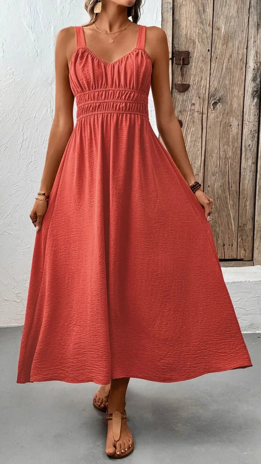 Imagine yourself flowing through your day in this beautifully crafted women's midi dress that moves with you like a gentle breeze. The thoughtfully designed V-neckline creates an elegant silhouette that flatters every body type, while the wide straps provide comfortable support without sacrificing style. This dress embodies the perfect balance between relaxed bohemian vibes and sophisticated femininity.
