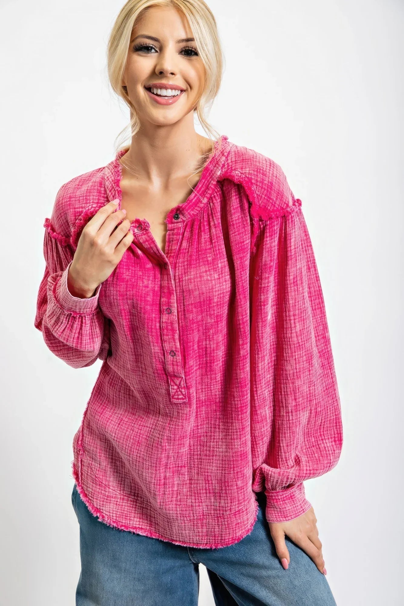 Get ready to turn heads and make a statement with our Washed Cotton Gauze Tunic in Magenta Rose. Add it to your cart now and experience the perfect blend of fashion and comfort!
