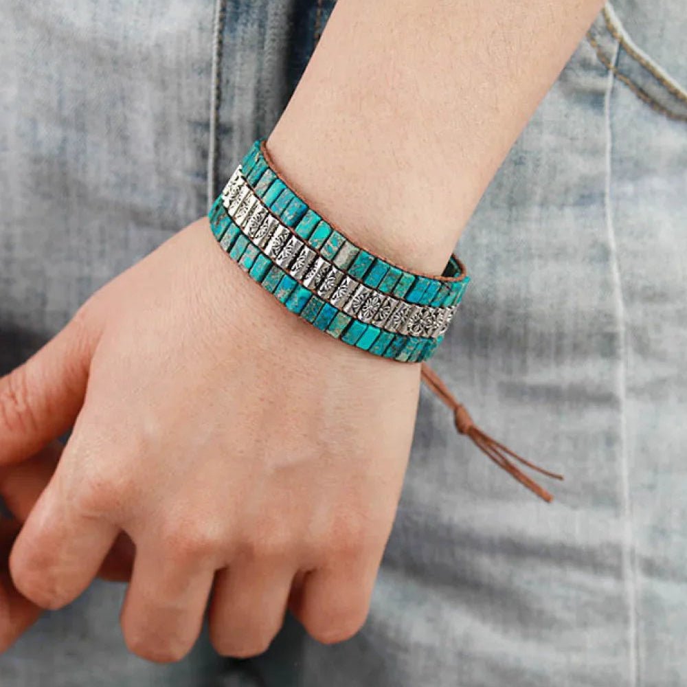 Elevate your style with this stunning layered bracelet that combines natural beauty with artisanal craftsmanship. Each piece showcases the unique patterns and colors that only genuine natural stones can provide.