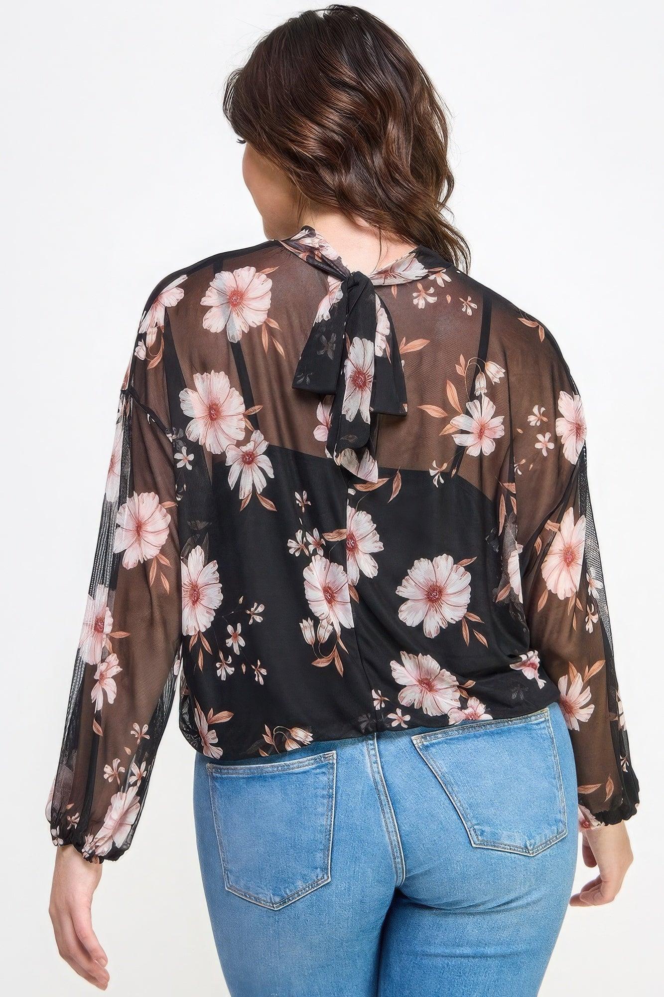 • Elevate your wardrobe with our Mesh Floral Long Sleeve Top with Cami, a timeless piece that effortlessly combines style and comfort.