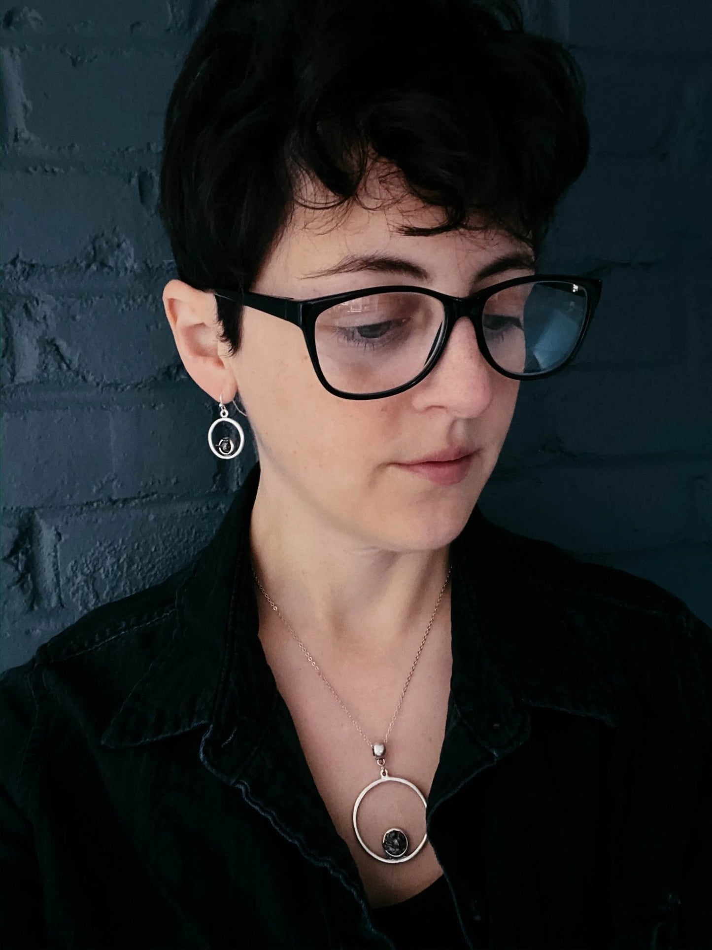 Meteorite Jewelry Set - Circle Necklace and Earrings