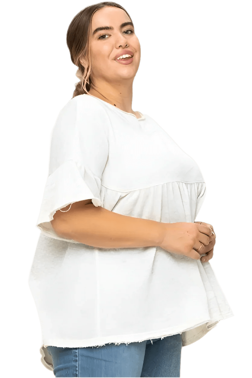 • Elevate your wardrobe with the Solid French Pullover Terry Woven Top, a blend of comfort and style.