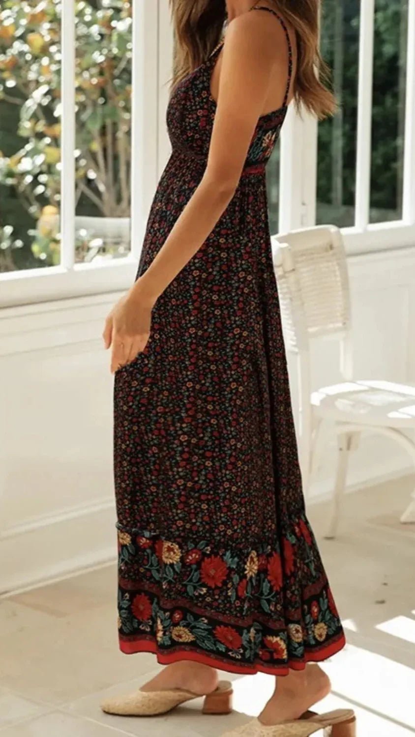 Step into a world of free-spirited fashion with this enchanting boho maxi dress that perfectly captures the essence of bohemian chic. This printed maxi cami dress is designed for the modern woman who values both comfort and style, making it an essential addition to any fashion-forward wardrobe.