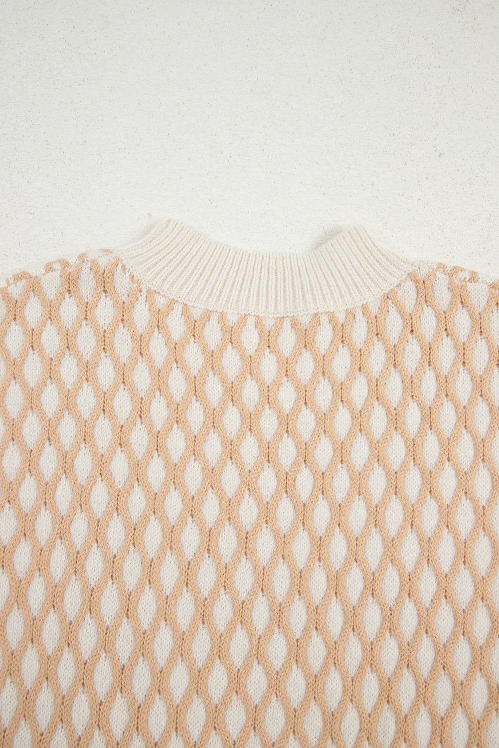 Smoke Gray Checkered Textured Knit Mock Neck Sweater