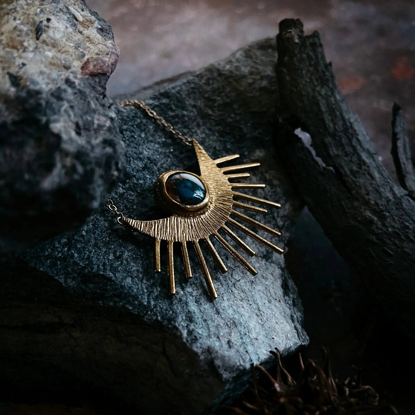 Sun Goddess Necklace - Sun Pendant with Copper Oyster Turquoise