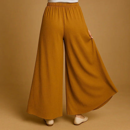 Washed Satin Wide Leg Pants - Elegant Camel Style