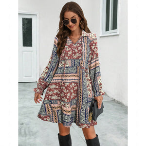 Embrace effortless style with our Boho Floral Print Long Sleeve Mini Dress. Perfect for the modern woman who loves travel, art, and a touch of bohemian flair. This mini dress features a vibrant mixed floral print and a flattering V-neck. Shop now and add a touch of wanderlust to your wardrobe!