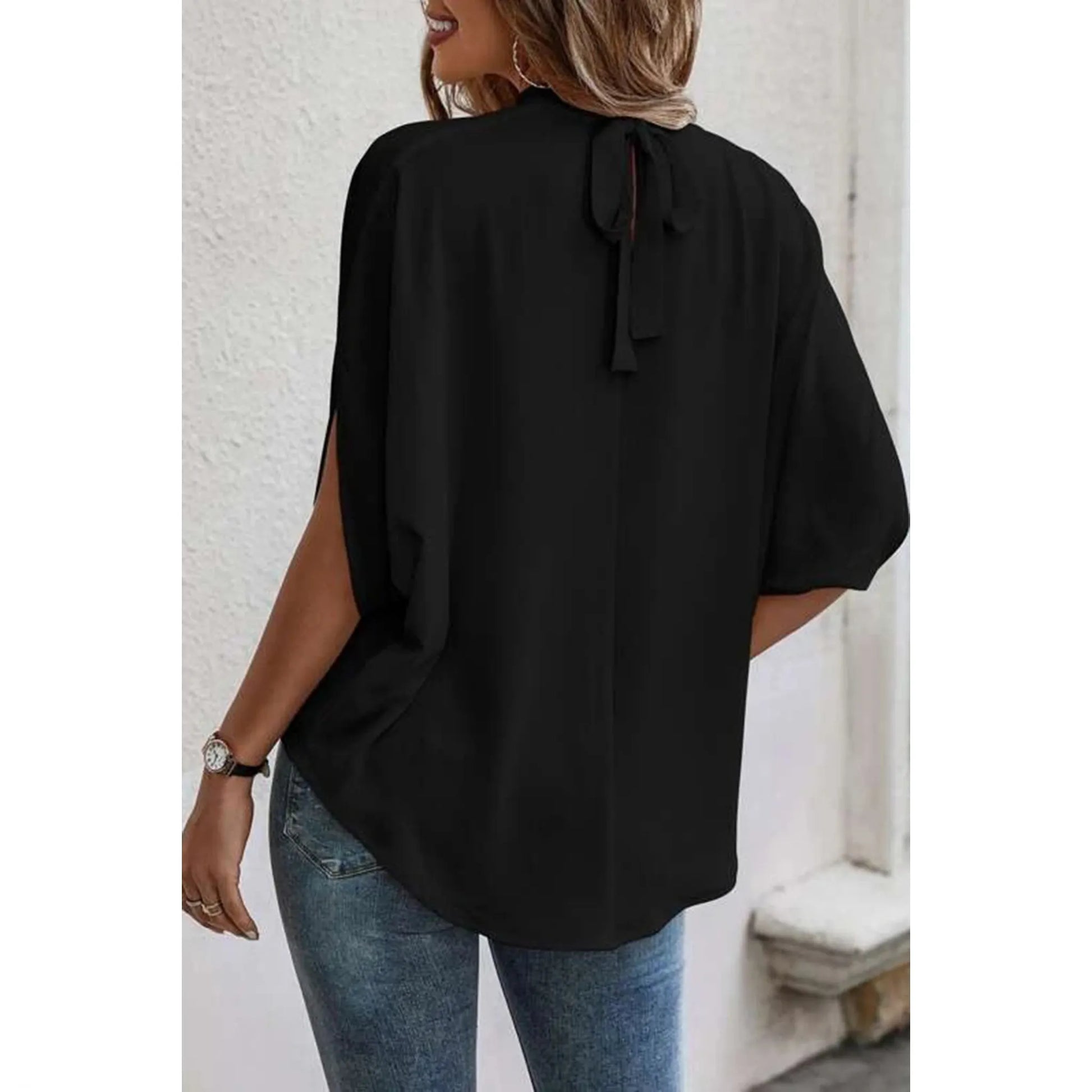 Tie Back Slit Half Sleeve Blouse: Effortlessly chic style! This blouse offers a flattering fit and breathable comfort.